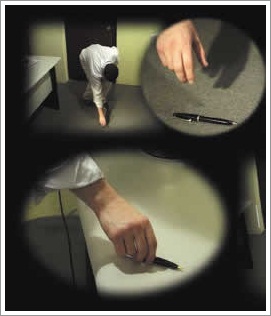 Eyni şəkildə yerə düşən qələmi əyilib götürən və stolun üstünə qoyan birini gördükdə müqayisə edir. Gördüyü insan qələmi stolun üstünə qoyduğu anda o şəxsin qələmi əyilib götürməsi və stola doğru yeriməsini seyr edən şəxsin beynində yerləşən məlumatlardır. Zaman hissi qələmi stolun üstünə qoyan insan ilə bu məlumatlar arasında müqayisə aparılaraq ortaya çıxır.